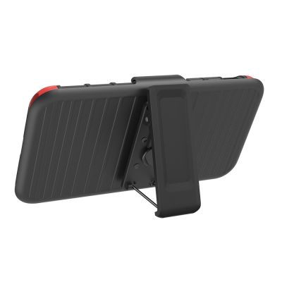 Cube® - Apple iPhone 11 Pro Max - Holster Kickstand Combo - Red Rugged Modern Texture PC Cover with Black TPU Case with Premium Packaging - Tempered Glass Included