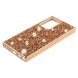 Samsung Galaxy Note 20 Ultra - Rose Gold Rock Crystal Studded Back Cover With Rose Gold Chrome Bumper on Peach TPU Skin