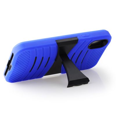 Cube® - Alcatel 3v (2019) - Cobalt Blue Colored Horizontal Hard Back Kickstand with Black TPU Hybrid Front Bumper Combo Case
