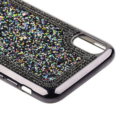 Cube® - Apple iPhone 13 Mini (5.4) - Black and White Stripe Rhinestone Bee Design Luxury Full Cover Crystal n Diamond Studded Back Cover with Luxury Hard Square Protective Corner Bumper