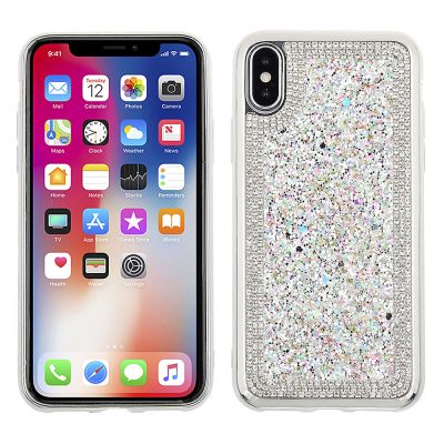 Cube® - Apple iPhone 13 Pro (6.1) - Glitter and Rhinestones with Butterfly and Flower Embellishments on PC Back Cover with Clear TPU Edge