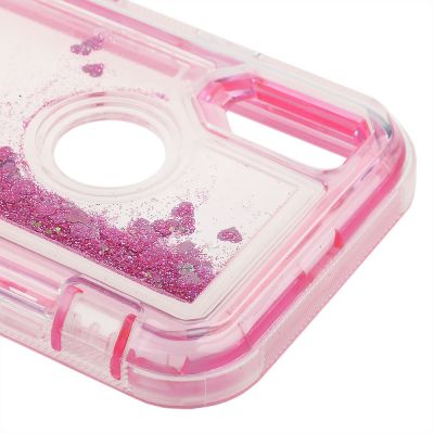 Cube® - Moto G Stylus - Hot Pink Liquid Glitter Hearts filled Hybrid Case