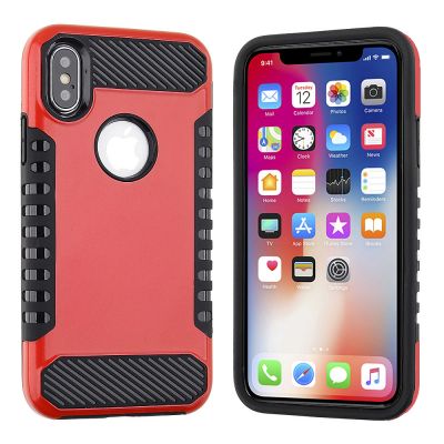 Cube® - LG Stylo 5 - Carbon Texture Red Hard PC Back with Soft Black Incline TPU