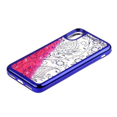 Cube® - Alcatel 3v (2019) - Pink Liquid Glitter filled Case with Flower Design on Dark Blue Colored Edge