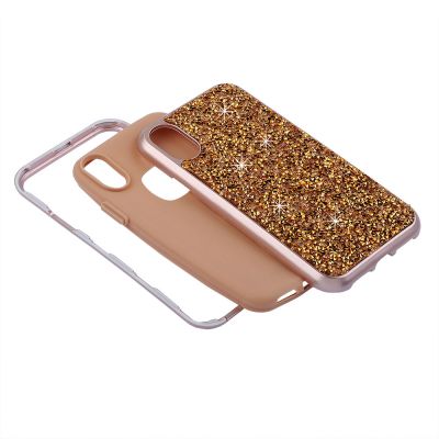 Cube® - Motorola Moto G Stylus - Rose Gold Rock Crystal Studded Back Cover With Rose Gold Chrome Bumper on Peach TPU Skin