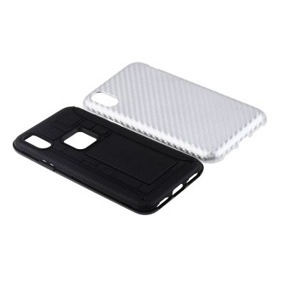 Cube® - Alcatel 3v (2019) - Carbon Texture Silver Hard PC Back with Soft Black Incline TPU
