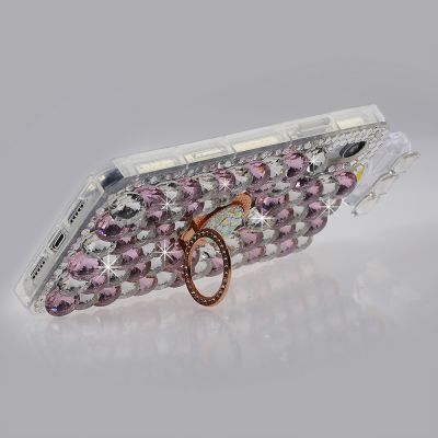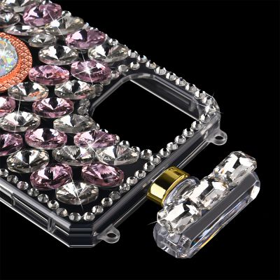 Cube® - Apple iPhone 13 (6.1) - Premium Clear TPU Perfume Bottle Shape Case with Large Pink and Silver Rhinestones with Ring Stand and Detachable Strap