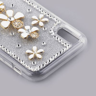 Cube® - Apple iPhone XR - Glitter and Rhinestones with Flower Embellishments on PC Back Cover with Clear TPU Edge in Premium Packaging