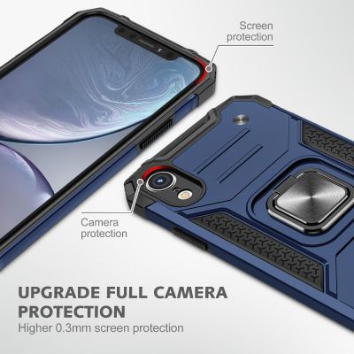 Cube® - Apple iPhone XR - Dark Blue Military Grade Protective Hard Cover PC with Black Soft TPU Case with Adjustable Rotating Metal Stand Car Magnetic Bracket