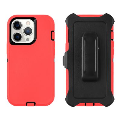 Cube® - Apple iPhone 13 Pro (6.1) - Tough Pro Case with Holster Clip - Black PC Hard Cover with Red TPU Bumper