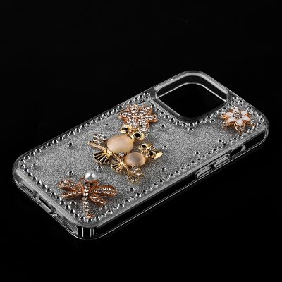 Cube® - Apple iPhone 13 (6.1) - Glitter and Rhinestones with Owl and Dragonfly Embellishments on PC Back Cover with Clear TPU Edge