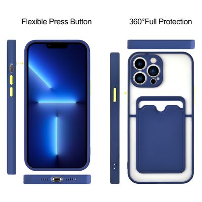 Cube® - Apple iPhone 13 Pro Max (6.7) - Clear Credit Card Holder Protective Back Cover with Blue Soft Gel Rubber Protective Edge Bumper