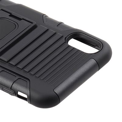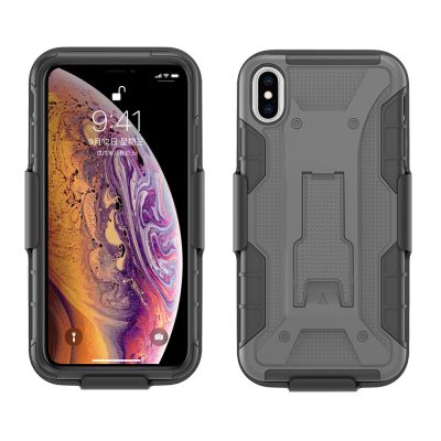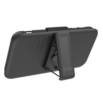 Cube® - Apple iPhone Xs Max - Holster Kickstand Combo - Black Rugged Texture PC Cover with Black TPU Case