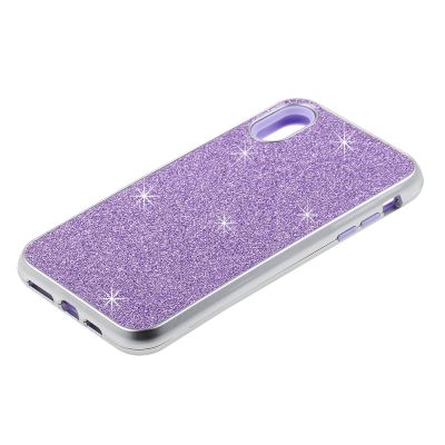 Cube® - Apple iPhone Xs Max - Light Purple Shiny Textured Back Cover with Silver Hard Edge and Light Purple Soft Silicone Skin