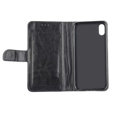 Cube® - Apple iPhone Xs Max - Black Colored Faux Leather Wallet Case with Hidden Double Fold Credit Card Pouch with TPU Cover