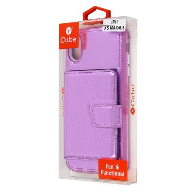 Cube® - Apple iPhone Xs Max - Purple Colored Hard Plastic with Attached Chrome Wallet and Light Purple Silicone Skin in Premium Packaging