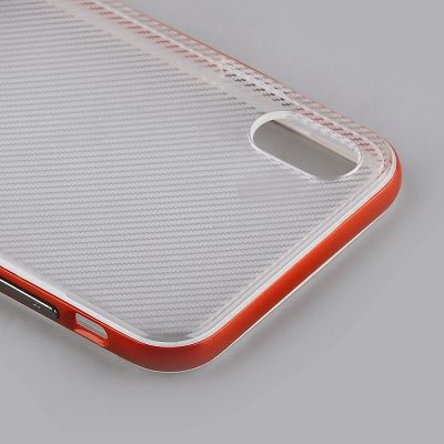 Cube® - Apple iPhone Xs Max - Carbon Fiber Patterned Clear Silicone Skin with Red PC Kickstand Edge