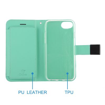 Cube® - Apple iPhone 8 / iPhone 7 / iPhone 6s / iPhone 6 - Mint Green colored High Quality Synthetic Leather Wallet Case with Credit Card Holder