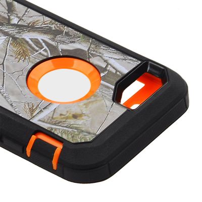 Cube® - Apple iPhone 8 / iPhone 7 - Tough Pro Case with Holster Clip - Tree Camo Design on Orange PC Hard Cover with Soft Orange TPU Bumper