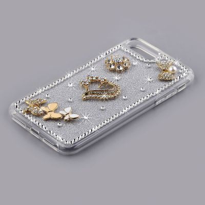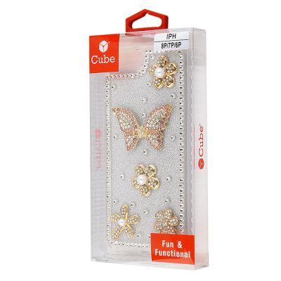 Cube® - Apple iPhone 8 Plus / iPhone 7 Plus / iPhone 6s Plus / iPhone 6 Plus - Glitter and Rhinestones with Butterfly and Flower Embellishments on PC Back Cover with Clear TPU Edge in Premium Packaging