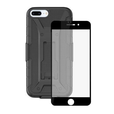 Cube® - Apple iPhone 8 Plus / iPhone 7 Plus - Holster Kickstand Combo - Gun Black Rugged Modern Texture PC Cover with Black TPU Case with Premium Packaging - Tempered Glass Included