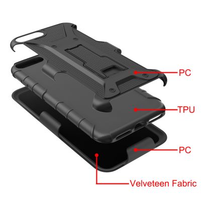 Cube® - Apple iPhone 8 Plus / iPhone 7 Plus - Holster Kickstand Combo - Black Rugged Modern Texture PC Cover with Black TPU Case with Premium Packaging - Tempered Glass Included