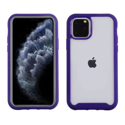 Cube® - Apple iPhone 11 Pro - Clear PC Back Cover with Purple TPU Edge and Gray PC Bumper