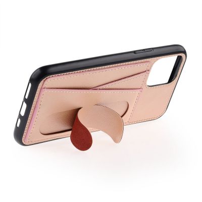 Cube® - Apple iPhone 11 Pro - Rose Gold Leather Credit Card Holder Case with Black Bumper and Snap Out Kickstand