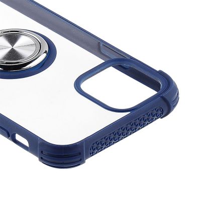 Cube® - Apple iPhone 11 Pro - Clear PC Back Cover with Ring Stand and Dark Blue Textured TPU Edges