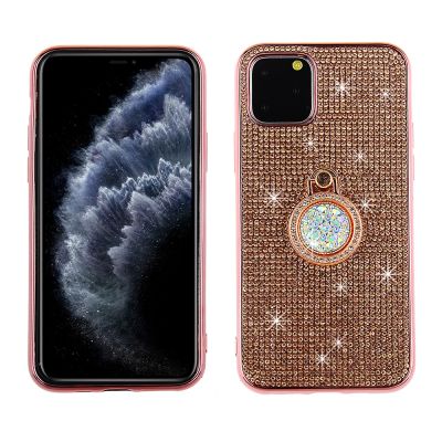 Cube® - Apple iPhone 11 Pro - Rose Gold Rhinestoned Case with Ring Stand and Chrome TPU Edge