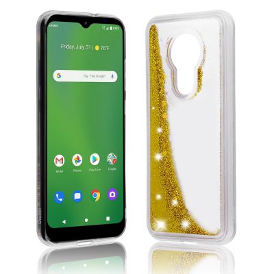 Cube® - Cricket Ovation - Golden Liquid Glitter Hearts filled Case with Clear TPU Edge