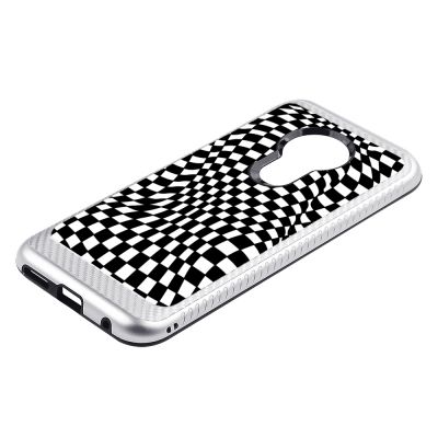 Cube® - Cricket Ovation - Warped Black and White Checkered Design on Carbon Texture Silver Hard PC Back with Soft Black Incline TPU