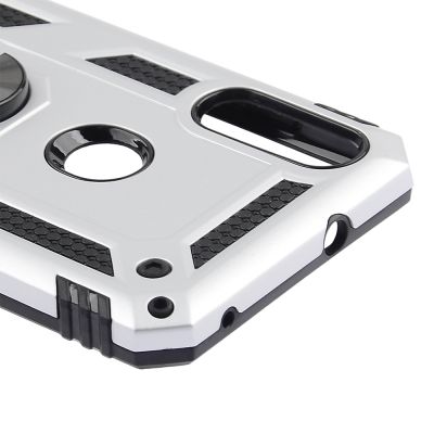 Cube® - Motorola Moto E (2020) / E7 - Silver Ring Stand Back Cover On Black Circle Texture TPU Skin