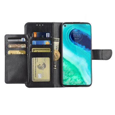 Cube® - Motorola Moto G Fast - Black Colored Faux Leather Wallet Case with Hidden Double Fold Credit Card Pouch with TPU Cover
