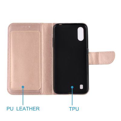 Cube® - Samsung Galaxy A01 - Rose Gold Colored Faux Leather Wallet Case with Hidden Double Fold Credit Card Pouch with TPU Cover