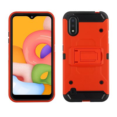 Cube® - Samsung Galaxy A01 - Red Colored Horizontal Hard Back Kickstand with Black TPU Hybrid Front Bumper Combo Case