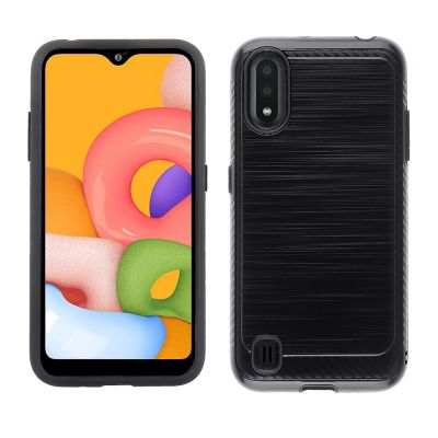Cube® - Samsung Galaxy A01 - Carbon Texture Black Hard PC Back with Soft Black Incline TPU
