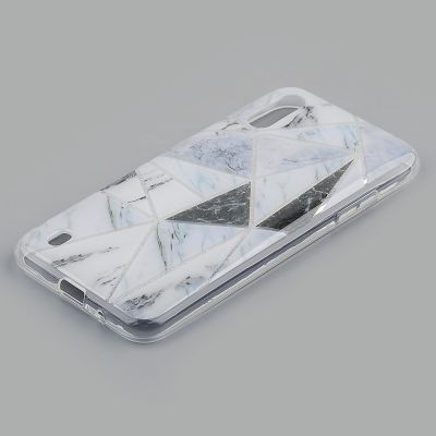 Cube® - Samsung Galaxy A01 - Gray and Black Geometric Marble Design on Clear PC Back with Clear TPU Edge