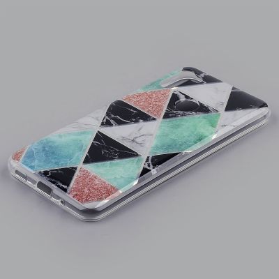 Cube® - Samsung Galaxy A21 - Black and Green Triangle Pattern Marble Design on Clear PC Back with Clear TPU Edge