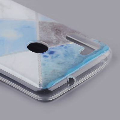 Cube® - Samsung Galaxy A01 - Light Blue and Gray Abstract Marble Design Clear PC Back with Clear TPU Edge