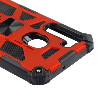 Cube® - Samsung Galaxy A21 - Red Colored Hard Back with Vertical Kickstand with Black Raised TPU Corner Edges Combo Case
