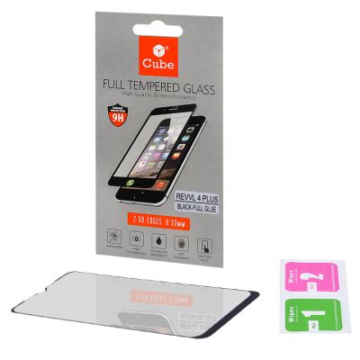 Cube® - TCL Revvl 4 - Tempered Glass Screen Protector With Black Metallic Cover - Processed Glass Reinforced to increase Shock Absorbency