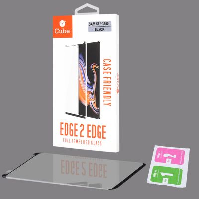 Cube® - Samsung Galaxy S8 - Case Friendly Tempered Glass Screen Protector With Black Chrome Cover - Processed Glass Reinforced to increase Shock Absorbency