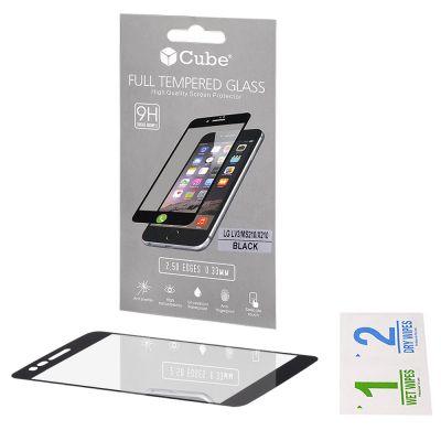 Cube® - LG Aristo 3 / Aristo 3+ / Aristo 2 / X210 / Fortune 2 / Dynasty / LV3 / Aristo / Fortune - Tempered Glass Screen Protector With Black Metallic Cover - Processed Glass Reinforced to increase Shock Absorbency